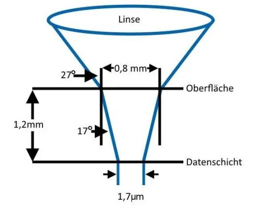 Das Auslesen von CDs erfolgt durch den Einsatz eines infraroten Lasers mit einer Wellenlänge von 780 nm. Dieser tastet die Pitstruktur der CD präzise ab und liest dabei die gespeicherten Daten. Der Laser bewegt sich entlang der Rückseite des optischen Datenträgers, während eine exakte Fokussierung erforderlich ist, um eine korrekte Datenübertragung zu gewährleisten.